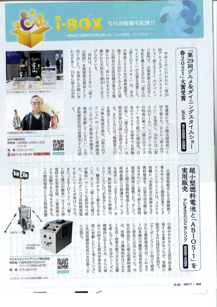 『ABIOS-1が月刊石垣に掲載されました』 2021 10/01 お知らせ 2021.10.01 お知らせ よかったらシェアしてね! URL Copied! URL Copied! 『ABIOS-1が2021年7月10日、神戸新聞に掲載されました』 『ABIOS-1が令和のベストヒット大賞2021に掲載されました』 関連記事 『H2&FC EXPO 2024いよいよスタート!』 2024.02.27 『ABIOS-2.4をスマイルフェスタ2022に出展しました』 2022.09.03 『ABIOS-1を姫路お城まつり2022に出展しました』 2022.05.21 『当社がH2&FC EXPOに出展します』 2024.01.30 『ABIOS-1を国際フロンティア産業メッセ2021に出展しました』 2021.10.31 『ホームページをリニューアル致しました』 2021.03.30 『ABIOS-1が21年5月31日、燃料油脂新聞に掲載されました』 2021.05.31 『ABIOS-1が2021年7月10日、神戸新聞に掲載されました』 2021.09.15