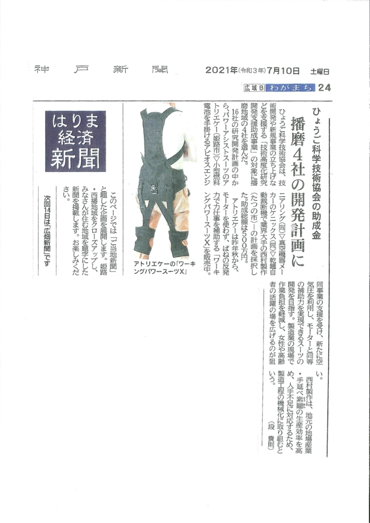 『ABIOS-1が2021年7月10日、神戸新聞に掲載されました』